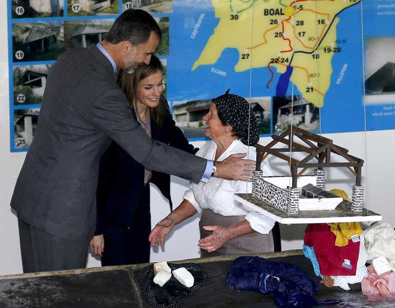 Spain's King Felipe and Queen Letizia visited the small town to hand over the 2014 Exemplary Town of Asturias Award to the association and neighbourhood movement of Boal, Spain. 25 October 2014