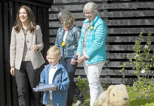 Crown Princess Mary of Denmark attended the opening of the Ringsted Krisecenters Sensory Garden and Playground on May 9, 2015 in Ringsted, Denmark. (The Krisecenters in Ringsted has created a garden that will serve as a haven for the abused and threatened women and children residing in the shelter. The children have been rare and challenging play areas and created opportunity for conversations and meetings can be moved outside.