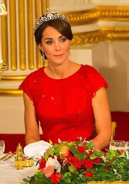 | Prince William, Duke of Cambridge and Catherine, Duchess of Cambridge wearing a tiara made by Garrard London attended a State Banquet held in honour of China's President Xi Jinping at Buckingham Palace to on October 20, 2015 in London, England. |