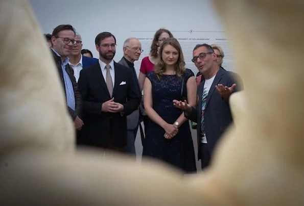 | On July 1st, 2016, MUDAM president Hereditary Grand Duchess Stephanie and Hereditary Grand Duke Guillaume of Luxembourg attended the opening of the Wim Delvoye exhibition at the Museum of Modern Art Grand-Duc Jean (Mudam) in Luxembourg. The exhibition runs from July 2, 2016 - January 8, 2017. |