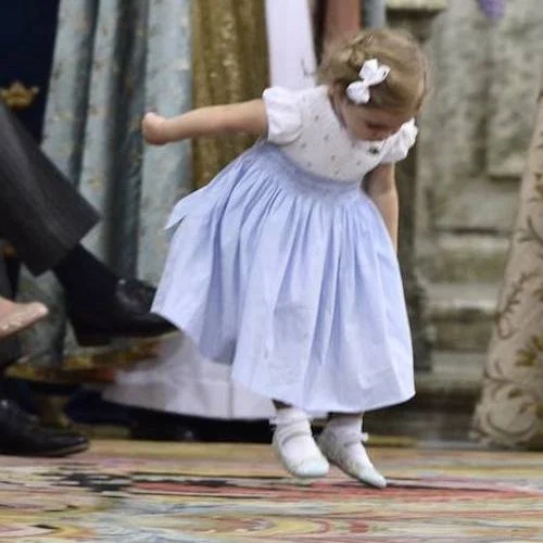 15. While Leonore behaved better at Prince Alexander's christening, her behavior as compared to Estelle's behavior at the same age is strikingly different. Leonore appears to be much more undisciplined to the extent that Chris O'Neil actually looks embarrassed sometimes. I like that the children are included in these ceremonies, however, they might want to allow Leonore to grow up a little before taking her to more events like this. Of course, with no more babies on the horizon, time will probably take care of this situation.