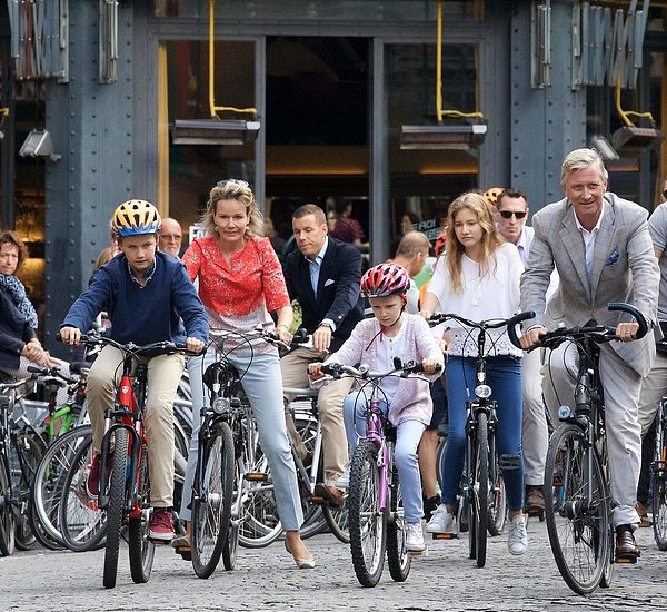 | King Philippe, Queen Mathilde, Crown Princess Elisabeth, Prince Gabriel, Princess Eleonore and Prince Emmanuel of Belgium take part in the Car Free Sunday on September 18, 2016, in the Brussels Capital region. In several cities and towns across Belgium a Sunday without cars or other motorized transport is organized. |