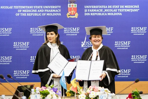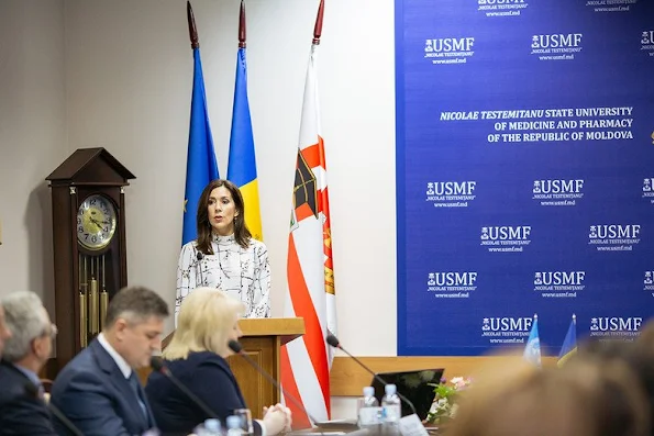 | Crown Princess Mary of Denmark together with Moldovian Minister of Health, Ruxanda Glavan visited Public Health Institute on November 24, 2016, Thursday and attend a meeting with specialists who are specialized in mother and child health and antimicrobial resistance. Afterwards, the Crown Princess visited UN Country Office, Mother and Child Institute, Medicine and Pharmacy State University. ( VIDEO ) |