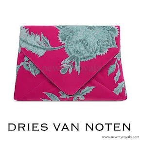 Queen Mathilde wore DRIES VAN NOTEN Silk Coat from Spring/Summer 2016 CollectionQueen Mathilde carried DRIES VAN NOTEN Floral Jacquard Silk Clutch