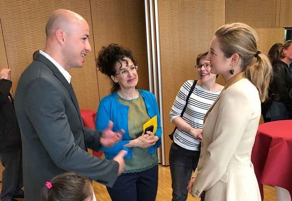 | On May 13, 2018, Sunday, Hereditary Grand Duchess Stéphanie of Luxembourg attended a conference on "Occupational therapy for stroke", held at Rehazenter Medical Rehabilitation Center as part of 2018 World Stroke Day (Journée mondiale de d’AVC). Grand Duchess Stéphanie is the patron of Blëtz asbl. Blëtz asbl, Rehazenter Rehabilitation Center and ALED Association hold a training course for therapists. |