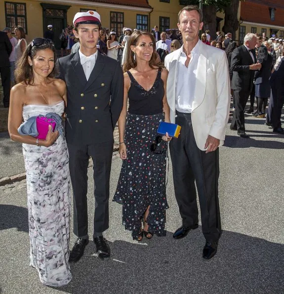 | The son of Danish Prince Joachim and his former-wife Countess Alexandra, Prince Nikolai graduated from Herlufsholm Secondary School in Næstved near Copenhagen, and Prince Joachim, Princess Marie, Prince Felix and Countess Alexandra attended the traditional graduation party held at the school. At the graduation party, Princess Marie wore a new floral print silk skirt by Ganni. |