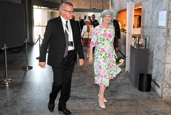 ReplyDeleteQueen Margrethe looks absolutely Lovely today, what a nice flowery dress and white hat.And she looks happy, and that is wonderful.