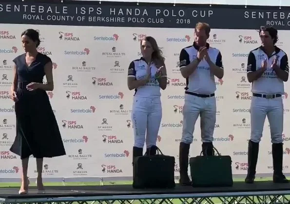 | On July 26, 2018, Prince Harry, Duke of Sussex and Meghan, Duchess of Sussex attended the Sentebale ISPS Handa Polo Cup held at the Royal County of Berkshire Polo Club in Berkshire. The annual event raises funds and awareness for Sentebale, the charity co-founded by the Harry which supports the wellbeing of children and young people affected by HIV in Africa. Meghan Markle wore a dress by Carolina Herrera. |