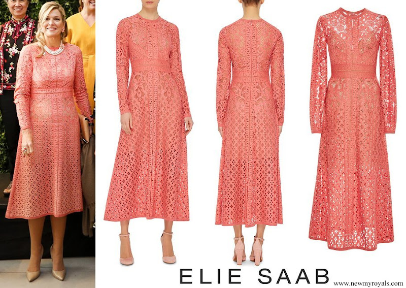 | On the third and final day of Dutch Queen Maxima's visit to Buenos Aires, the Queen visited the Latin American Museum of Arts (MALBA) as part of G20 Partners’ Programme in Buenos Aires, Argentina. Queen Máxima also met with Rene Mauricio Valdes, Resident Representative for the United Nations Development Programme. December 01, 2018. (The Queen wore a guipure lace dress by Elie Saab) |