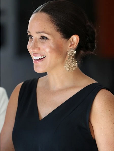 | Following their meeting with the Tutus, The Duchess of Sussex visited Woodstock Exchange and there, she met with female entrepreneurs and investors working in the technology sector. In the afternoon, The Duchess of Sussex visited the organization Mothers2Mothers which trains and employs women living with HIV. (The Duchess wore a black jumpsuit by Everlane.) |