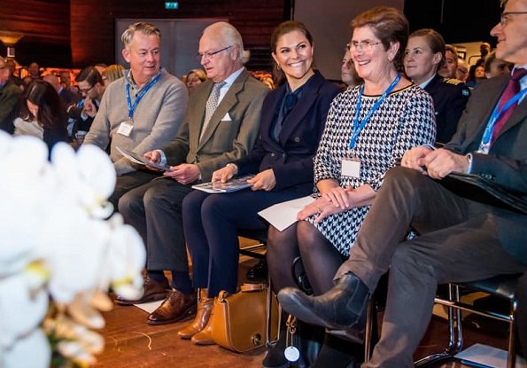 | King Carl XVI Gustaf and Crown Princess Victoria of Sweden are attending Annual National Conference of Society and Defence (Folk och Försvar’s Rikskonferensen), which is being held at Högfjällshotell in Sälen from January 12-14. The conference focuses on security of the world, Sweden's defence, and emergency preparations of the society. (Crown Princess Victoria wore a navy blue suit by Tiger of Sweden.) |