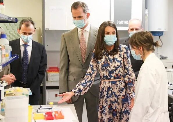 On June 15, 2020, King Felipe VI and Queen Letizia of Spain visited the National Museum of Natural Sciences of Spain (Museo Nacional de Ciencias Naturales) in Madrid. The National Museum of Natural Sciences is one of the oldest natural history Museums in the world. The Museum is also known as one of the most important scientific research institutes in the country in the field of natural sciences. (Queen Letizia wore a printed silk dress by Sandro.)