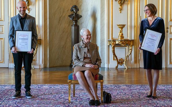 The award was presented at Amalienborg Palace to professor and chief physician Ellen-Margrethe Hauge for her extraordinary contribution to research relating to rheumatoid arthritis. The prize was established in 1978 to mark Queen Ingrid's 25-year career as a patron of the Arthritis Association. Queen Margrethe has since then taken over her mother's patronage.