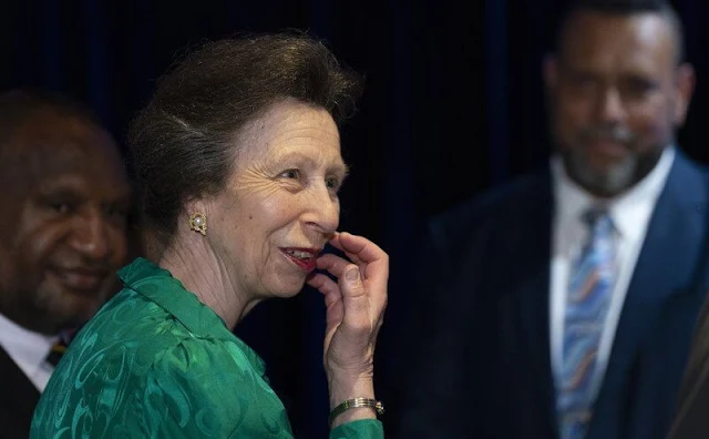 The Princess Royal and Vice Admiral Sir Tim Laurence met with the Governor General Sir Bob Bofeng Dadae and Her Excellency Lady Emeline Tufi Dadae at Government House in Port Moresby. Then, The Princess Royal and Vice Admiral Sir Tim Laurence attended a reception with Prime Minister of Papua New Guinea James Marape and his wife Rachel Marape in Port Moresby.