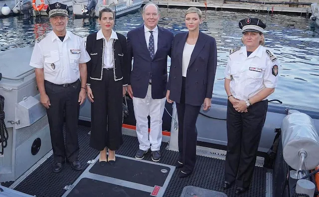 On September 27, 2023, Prince Albert II, Princess Charlene and Charlotte Casiraghi, Patron of the Police Department, attended the official launch of new rapid intervention vessel of the Maritime and Airport Police Division, in Port Hercule in Monaco.